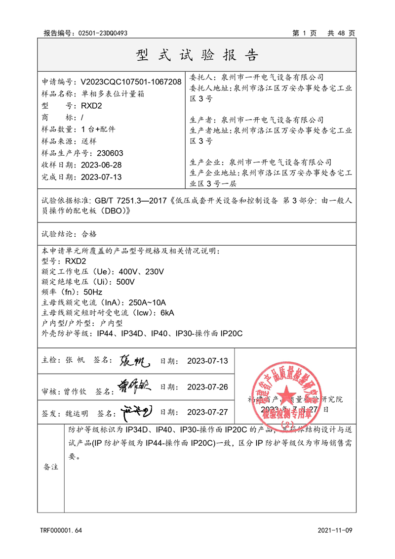 CQC产品认证型试验报告